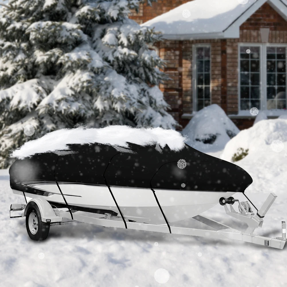 Protect your boat from sun, rain, and wear with a rugged V-shaped hull cover built for 14-16ft vessels.