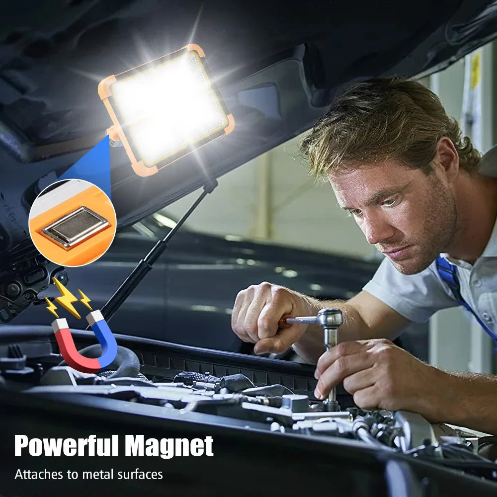 Magnetic: There is a magnet on each side of the solar panel, which can allow the solar work light to be adsorbed on the metal surface, providing temporary lighting and not easy to fall off. Please notice: When hanging the solar lamp, please make sure that the two magnets are firmly adsorbed on the metal surface.