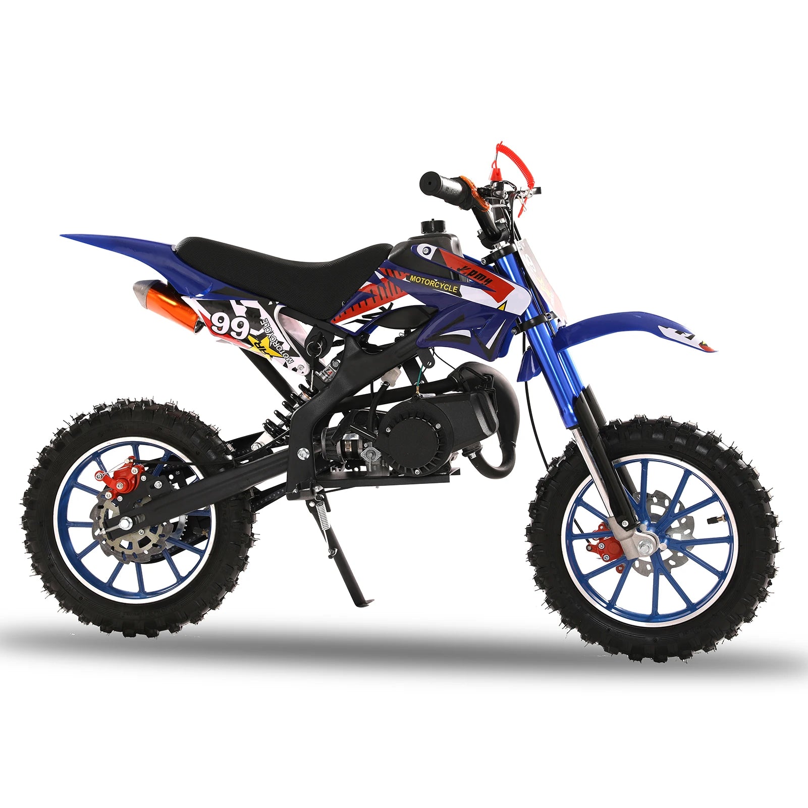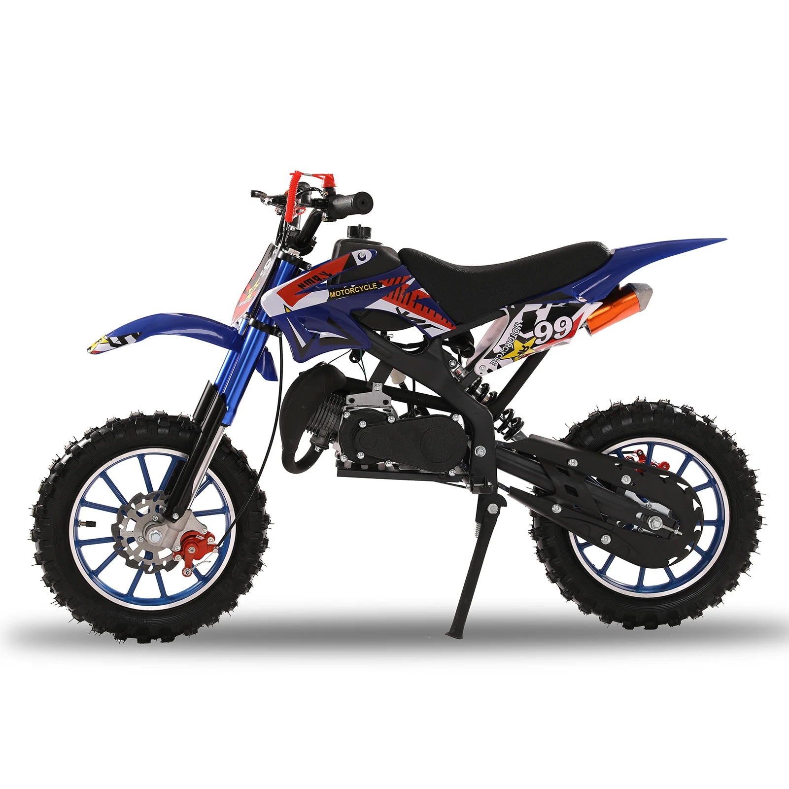 49cc 2-Stroke Dirt Bike, Gas Power Motocross, Off Road Mini Motorcycle with Front Rear Disc Brakes, Max Speed 40KM/H (Blue)
