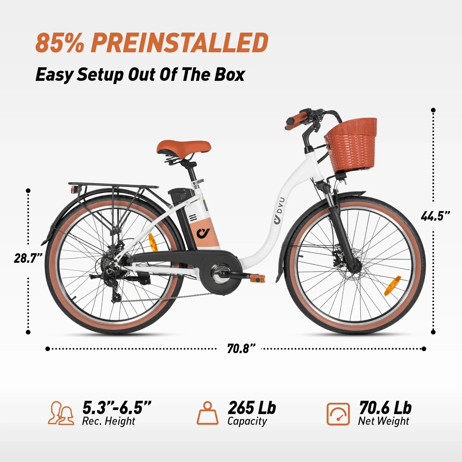 DYU C6 pro Adult Electric Bicycle, 250W city ebike, 36V 15.6AH E-bike, 26 Tire Electric Bike