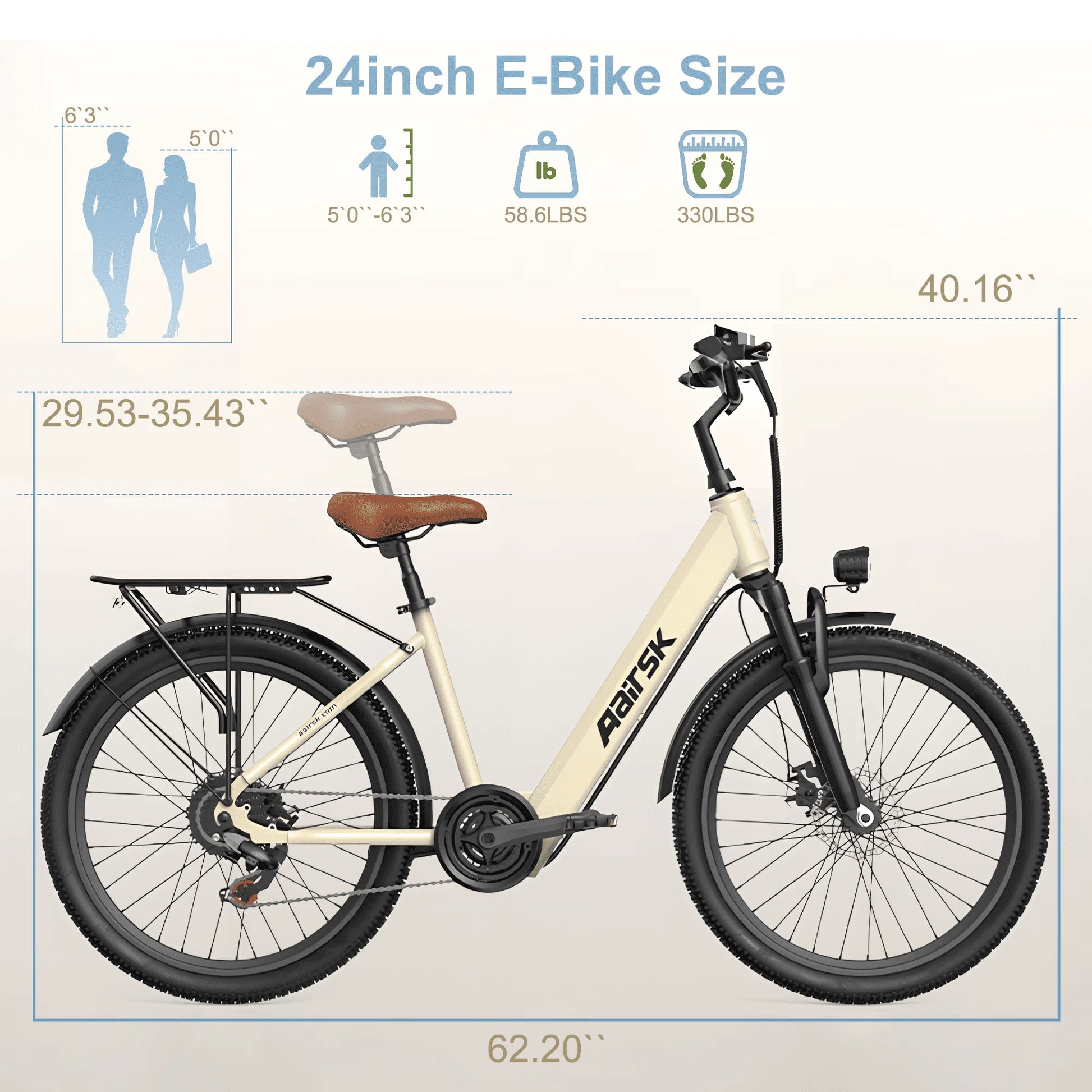Electric Bike Adults Peak 750W 23MPH Commuting Electric Mountain Bike 36V Lithium Battery,7-Speed,24" Tire Front Fork Suspension