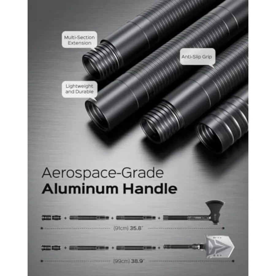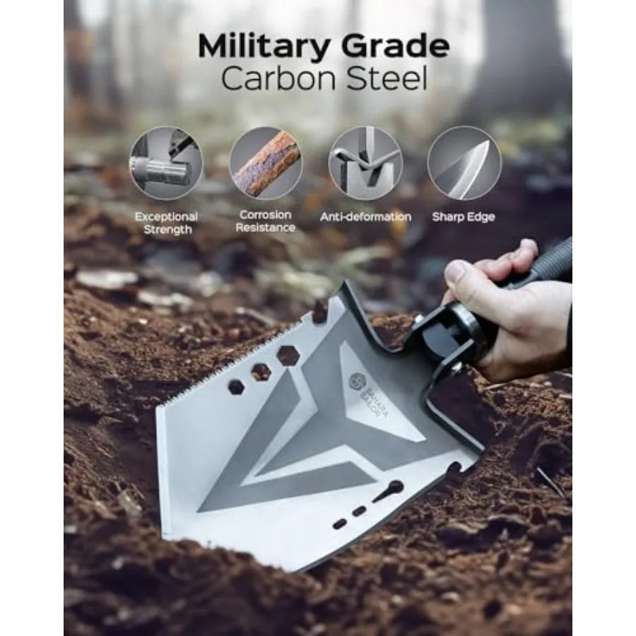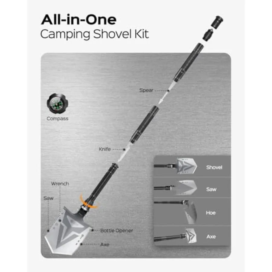 Folding Camping Shovel Axe Kit Military Grade Multifunctional Survival Tactical Shovel with Paracord Dual Color Flashlight Whet