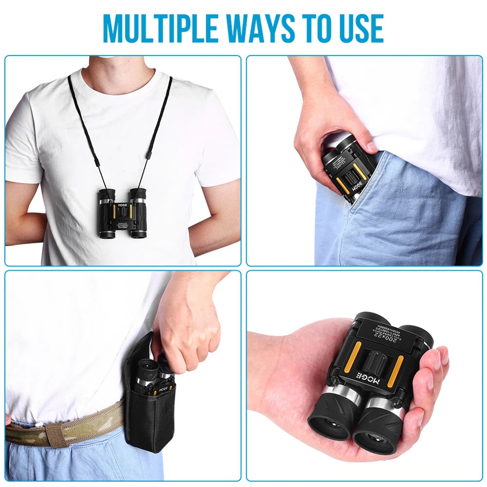 Monocular Telescope Long Range Telescope Outdoor Camping Professional 200x22 Powerful Mini Portable Hiking Survival Equipment HD High Magnification BAK4 Portable Binoculars Professional 40000m Mini Telescope for Outdoor Camping Hiking Traveling Equipment Feature: Powerful professional binoculars: designed with 20x magnification, large 22mm objective lens and a large field of view of 484 feet / 1000 yards for fast moving objects, perfect for bird watching, hunting, driving, sporting events. Low light vision with premium optics: FMC lens and multi-layer coating ensure excellent light transmission and nicely improve brightness, contrast and image quality. It can be used at night, but not in total darkness. Suitable for concerts, opera, travel and astronomical observation. , strong and non-slip: The non-slip structure structure not only looks decent, but also more resistant to wear and moisture, and it is perfect for outdoor activities such as hiking, trekking, traveling, watching wildlife and scenery. Easy to focus: It has a soft focus knob for easy focusing and is suitable for adults and children. Focus on the target easily with the precise center adjustment wheel. When first used, the diopter system adjusts the visual balance of both eyes, allowing you to see a more perfect image. Specification: Model: 200x22 telescope Weight: 0.21kg Size: 9*6.3cm/3.54*2.48in Field of view: 7 ° Magnification: 20X Lens material: BAK4 Optical coating: FMC Body material: rubber Eyepiece diameter: 10mm/0.39in Field of view: 4000 / 40000M Objective lens diameter: 22mm/0.87in Focusing mode: center focus Suitable for: concerts, outdoor sports, competitions, bird watching Specification: A: Binoculars, B: Binoculars+Spring Clamp Note: Due to the different monitor and light effect, the actual color of the item might be slightly different from the color showed on the pictures. Thank you! Please allow 1-2cm measuring deviation due to manual measurement. 1 x Binoculars 1 x Storage Bag 1 x Instructions 1 x Lanyard 1 x Wiping Cloth |