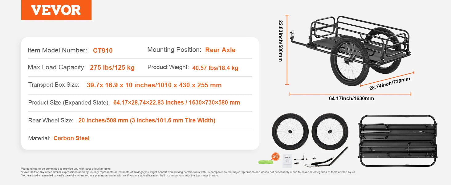 Heavy-Duty Capacity: SucceBuy’s bike cargo trailer can handle up to 275 lbs of cargo, making it the perfect choice for any adventure. From camping trips to running errands, this durable trailer ensures you can carry all your essentials with ease.